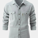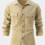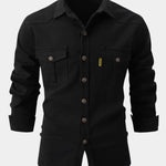Această cămașă cu nasturi și mâneci lungi este realizată dintr-un amestec de denim care oferă o structură țesută durabilă și o formă stabilă. Fața cu nasturi permite utilizatorului să deschidă sau să închidă cămașa pentru a ajusta acoperirea. Mâneci lungi cu manșete cu nasturi permit un simplu rulaj al mânecilor și o ajustare sigură la încheietura mâinii. Un guler clasic ajută la menținerea liniei gâtului ordonate sub straturile exterioare.