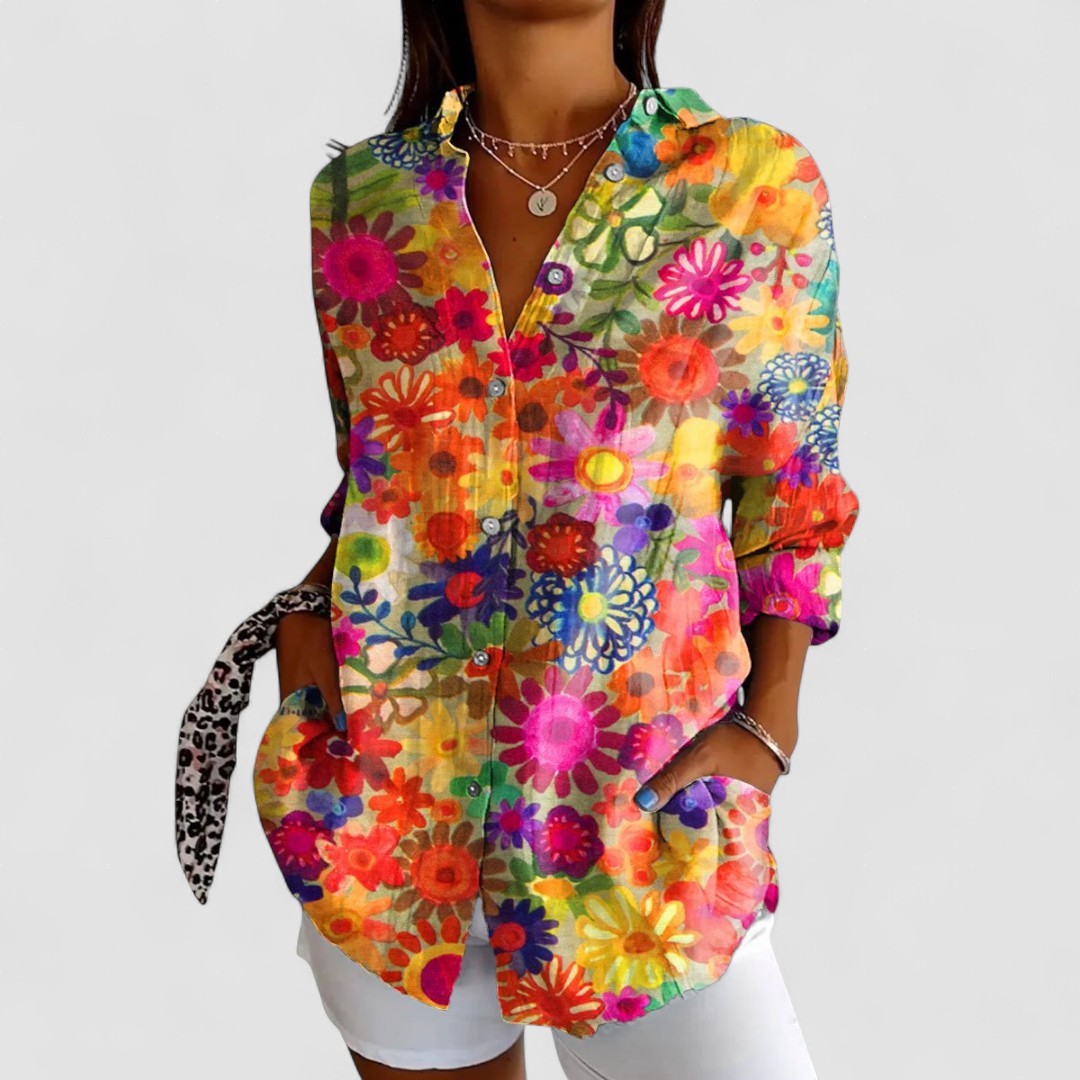 Imprimare florală atemporală: Imprimarea elegantă cu flori în mai multe culori conferă bluzei un aer vintage care rămâne mereu în tendințe.