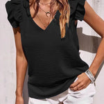 Top lejer cu detalii feminine - Lynette combină confortul și stilul fără efort. Cu un material ușor, decolteu în V și mâneci jucăușe cu volane, este alegerea perfectă pentru orice ocazie.