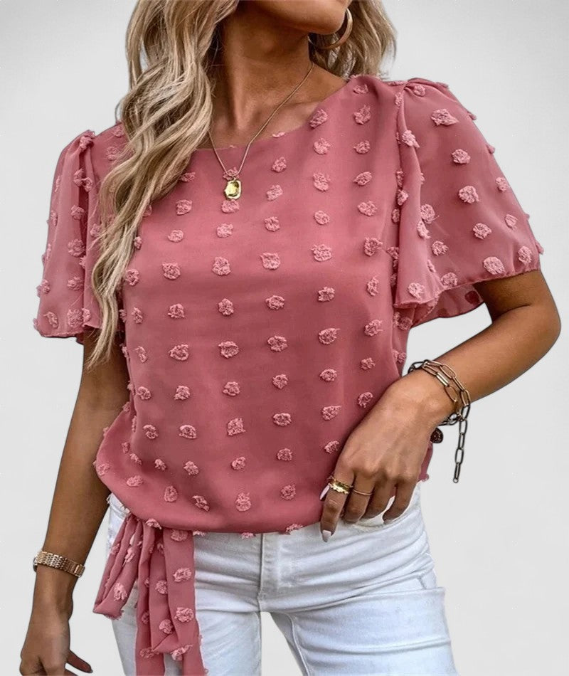 Descoperă topul Rita, combinația perfectă între farmecul jucăuș și eleganța atemporală. Decorat cu flori 3D drăguțe, acest top lejer este ideal pentru zilele însorite și momentele vesele.