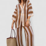 Pentru femeile care apreciază moda rafinată cu o notă contemporană, Setul Rayat Amelia Elara este combinația perfectă între luxul relaxat și sofisticarea fără efort. Acest ansamblu din două piese include o bluză fluidă cu decolteu în V și detalii delicate cu decupaje, asociată cu pantaloni cu picioare largi care se drapează frumos pentru o siluetă avantajoasă. Confecționat dintr-un material moale și respirabil, designul său cu dungi atemporale asigură versatilitate pentru orice ocazie—fie că te îmbraci pentru o plimbare elegantă prin oraș, o vacanță sau o ținută de zi cu zi elevată.