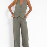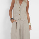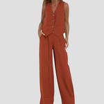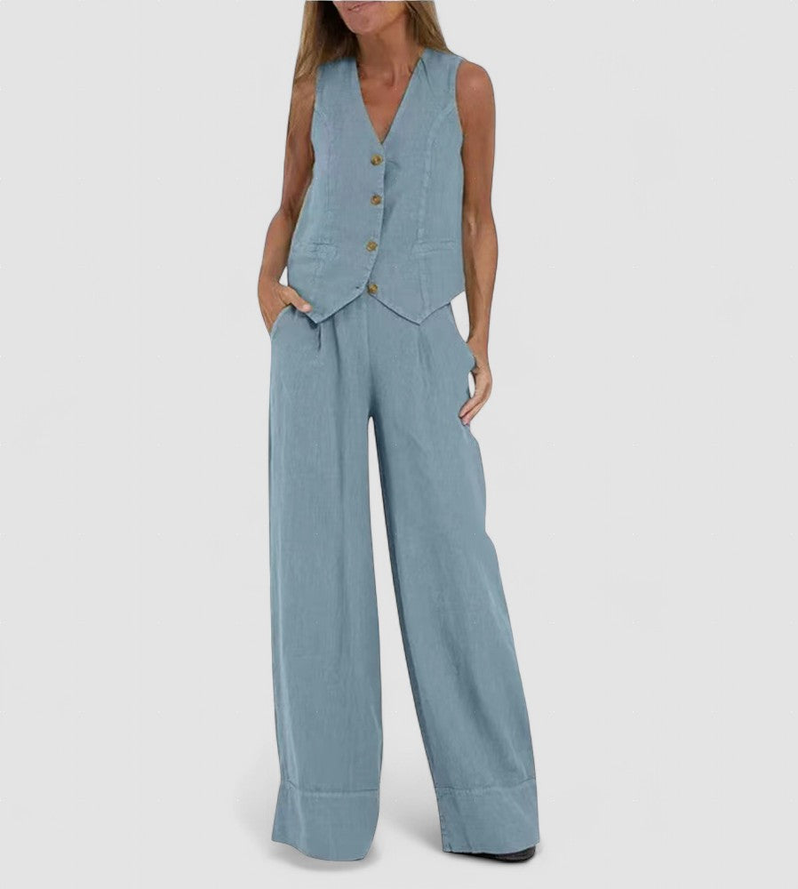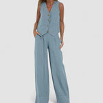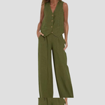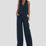 Jessica - Set Vestă cu Nasturi și Pantaloni Largi