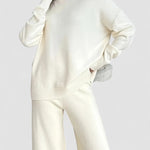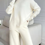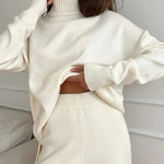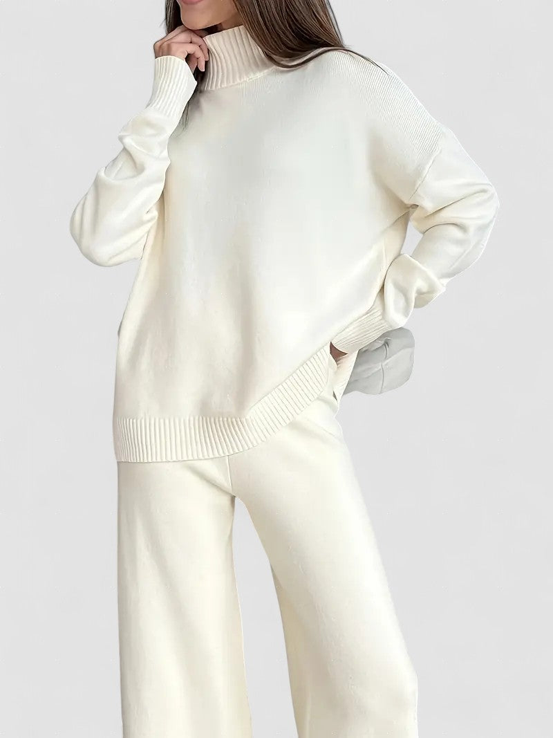 Set de tricot cu guler înalt de culoare solidă