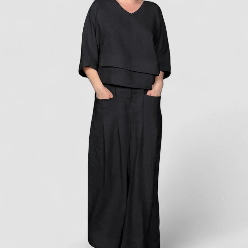 Set din două piese din bumbac și in cu mânecă scurtă