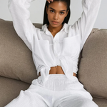 Design: Un set relaxat din două piese, format dintr-o cămașă cu nasturi și guler clasic și pantaloni cu picioare largi pentru un look chic și fără efort. Designul minimalist sporește versatilitatea și confortul.