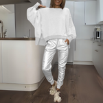 De ce să alegi setul Tomasa – Pulover și Jogger din Satin?