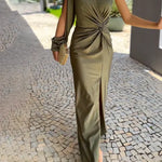 Alisa – Rochie Lungă Elegantă cu Umăr Asimetric pentru Femei