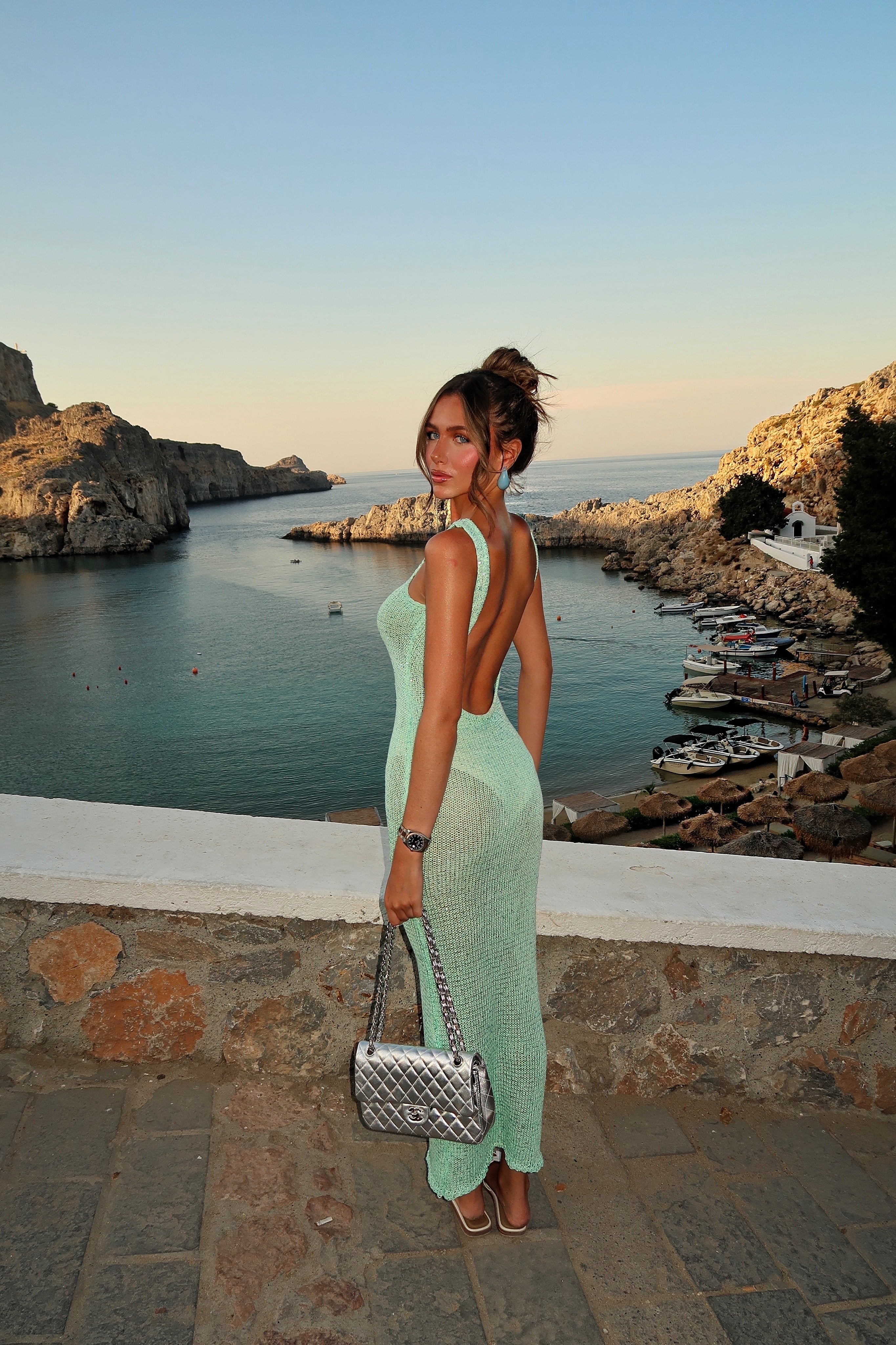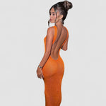 Rochia tricotată strălucitoare Lana cu spatele liber este concepută pentru a fascina. Tricotul elastic se mulează perfect pe corp, cu un decolteu adânc și elegant la spate, oferind exact cantitatea potrivită de sclipici. Ideală pentru cine pe acoperiș, petreceri la piscină sau ședințe foto în orele aurii, această rochie atrage toate privirile.