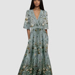 Lorelei™ | Rochie maxi brodată cu model floral este un vis din material delicat, siluetă feminină și broderii florale elaborate. Combinarea decolteului adânc în formă de V, croiul fluid și atenția la detalii face ca această rochie să fie alegerea ideală pentru o petrecere elegantă în grădină, nunți sau plimbări de vară. O rochie care îmbină grația și naturalețea.