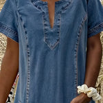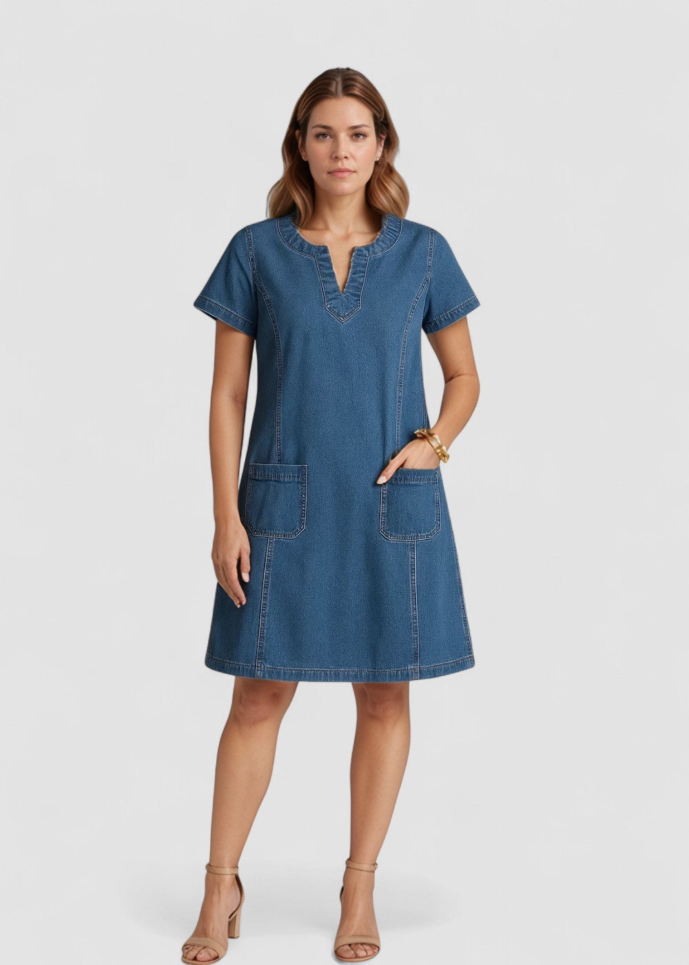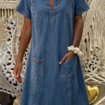 Raquel™ | Rochie tunică din denim cu buzunare îmbină stilul lejer cu finețea practică. Datorită croielii confortabile, decolteului în formă de V și buzunarelor aplicate, oferă un stil grozav pentru zilele relaxante. Ideală pentru plimbări, ieșiri de weekend sau vacanțe – pur și simplu îmbracă-te și simte-te bine!