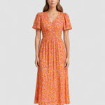 Seraphina™ | Rochie maxi cu flori și volane este un must-have absolut pentru zilele însorite în grădină, la piață sau în timpul întâlnirilor plăcute cu prietenii. Modelul floral vibrant în culori proaspete și talie feminină cu decolteu în formă de V îți oferă un aspect fermecător cu un farmec natural.