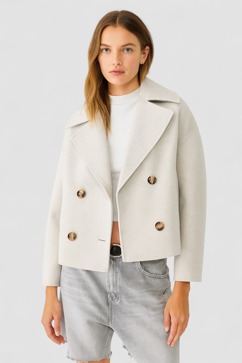 • Siluetă flatantă – croiala cropped evidențiază talia într-un mod subtil și feminin