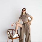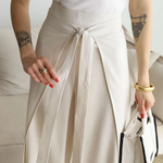 Intră în eleganța fără efort cu Pantalonii Largi din In Maelis—o combinație perfectă de structură, confort și stil. Concepuți cu un talie înaltă care flatează, un detaliu de legare în față în stil șorț și țesătură respirabilă din bumbac-in, acești pantaloni sunt noul tău favorit pentru look-uri rafinate, dar relaxate. Fie că te îmbraci elegant sau optezi pentru un stil casual, Maelis se mișcă cu tine în grație atemporală.