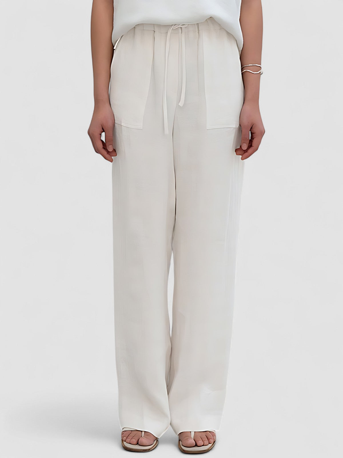 Design: Pantaloni eleganți cu talie înaltă, cu o croială dreaptă, realizați dintr-un amestec de in respirabil și având un design minimalist. Silueta relaxată, dar bine structurată, oferă o sofisticare fără efort.