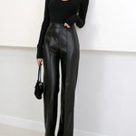 Pantaloni Eleganți din Eco-Piele cu Talie Înaltă