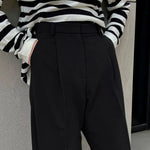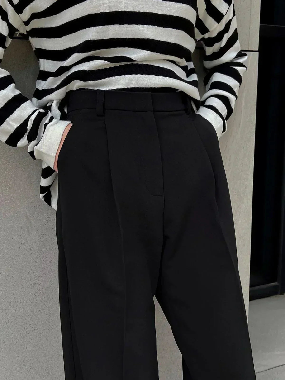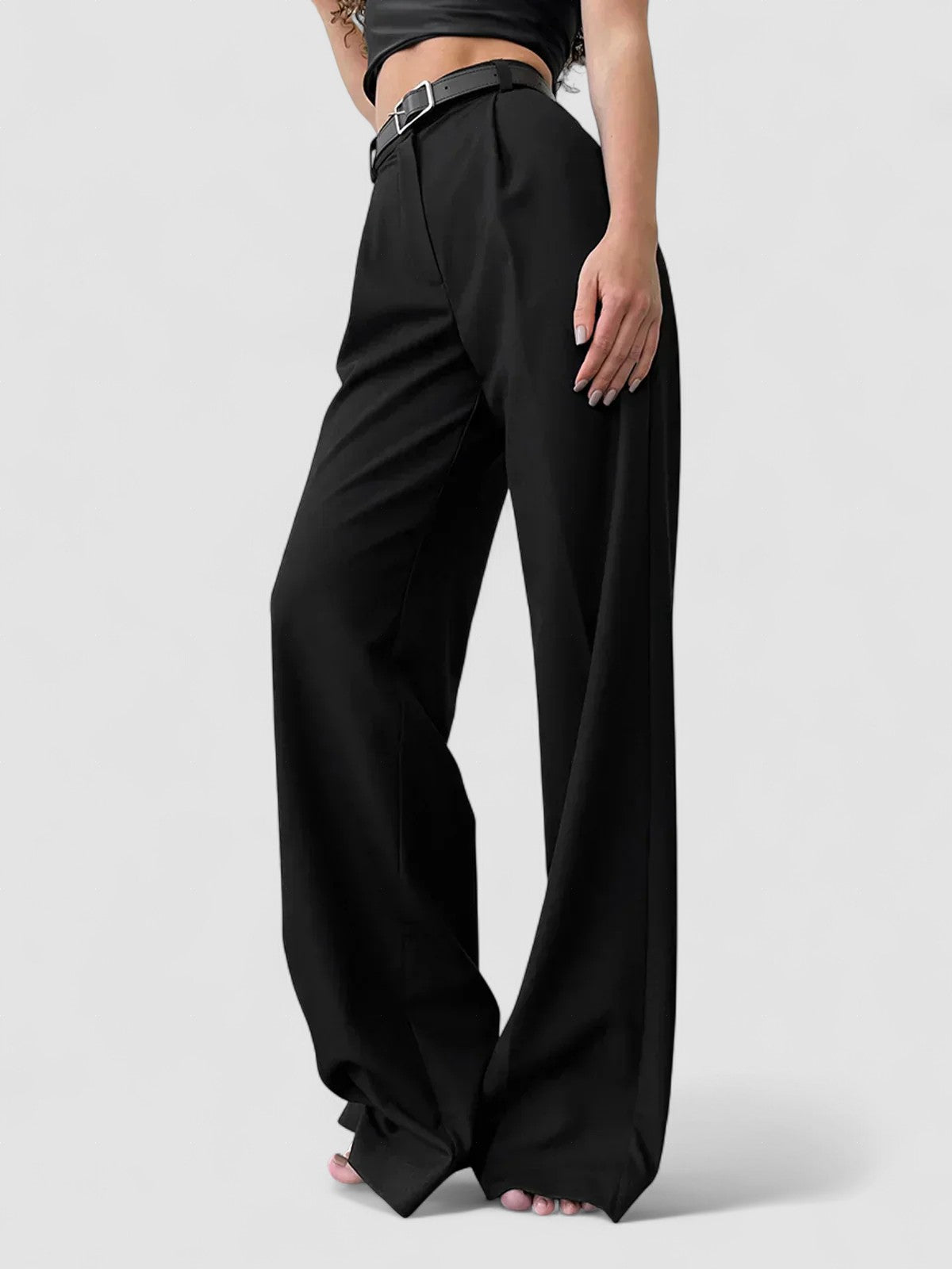 Pantaloni negri cu talie înaltă și croială largă