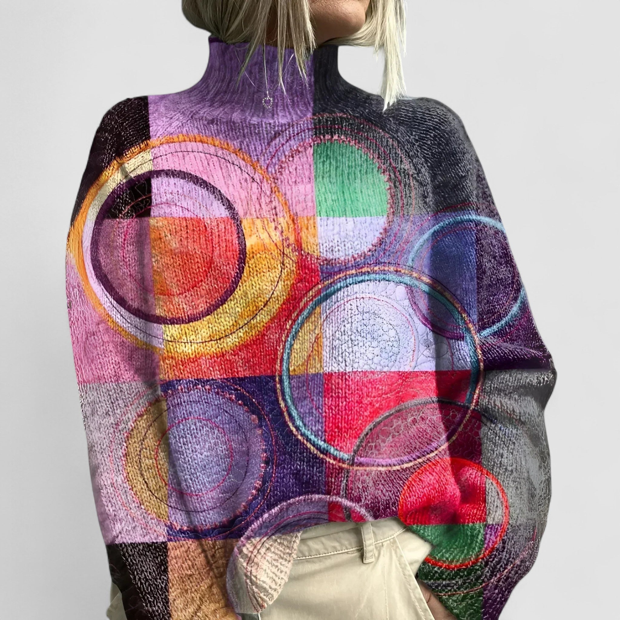 Jasmijn - Pulover tricotat cu guler înalt colorat