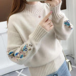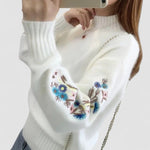SASKIA | Pulover din bumbac gros tricotat cu broderie florală