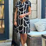 Anneliese – Rochie Polo de Damă cu Imprimeu Grafic și Croi Lejer