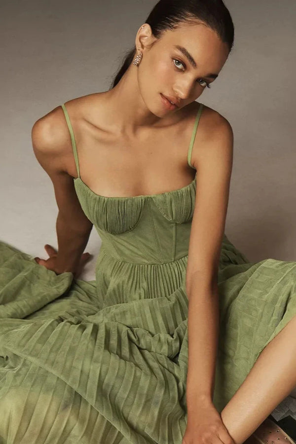 Beatriz – Rochie Damă Midi Plisată cu Croi Ajustat Elegant