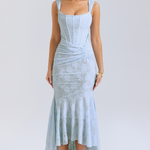Rochia maxi Carisia este alegerea ideală pentru femeile care caută o rochie de seară elegantă sau o rochie lungă pentru evenimente speciale. Croiul sculptural și dantela delicată creează o siluetă sofisticată, perfectă pentru nunți, petreceri elegante sau cine festive.