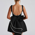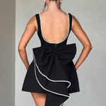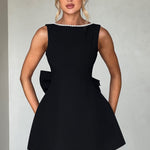 Rochie Mini Elle neagră cu fundă și perle