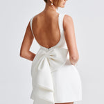 Elle – Rochie Mini de Damă cu Fundă și Perle