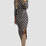 Jess – Rochie de Damă Elegantă cu Fanta și Imprimeu Strălucitor