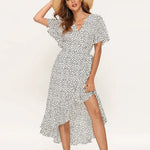 Această rochie combină stilul cu confortul, astfel încât să te simți mereu bine îmbrăcată fără efort. Croiul ajustabil oferă libertatea de a adapta rochia la silueta ta, în timp ce materialul respirabil permite pielii să se simtă proaspătă pe tot parcursul zilei. Modelele feminine și decolteul elegant în V fac ca această rochie să fie potrivită pentru orice eveniment de vară.