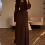 Nora™ | Rochie maxi din jacard cu mâneci îmbină silhouette feminină cu minimalism modern. Structura delicată din jacard se adaptează perfect corpului, oferind un aspect subțire și elegant. Datorită mânecilor evazate și lungimii până la pământ, această rochie emană o eleganță atemporală – perfectă pentru ocazii speciale sau momente stilate de zi cu zi.