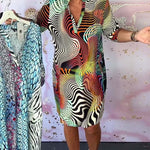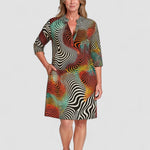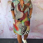 Gemma™ | Rochie cu iluzie optică și croi T-shirt este un adevărat hit pentru toți cei care au curajul de a purta culori! Datorită modelului său expresiv, psihodelic în culori ale curcubeului și croiului lejer, combină designul extravagant cu confortul purtării zilnice. Ideală pentru un vară stilată pe plajă, ieșiri în oraș sau petreceri relaxante în grădină.