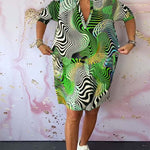 • Caracteristică specială: Decolteu adânc în formă de V, imprimare expresivă, mâneci scurte