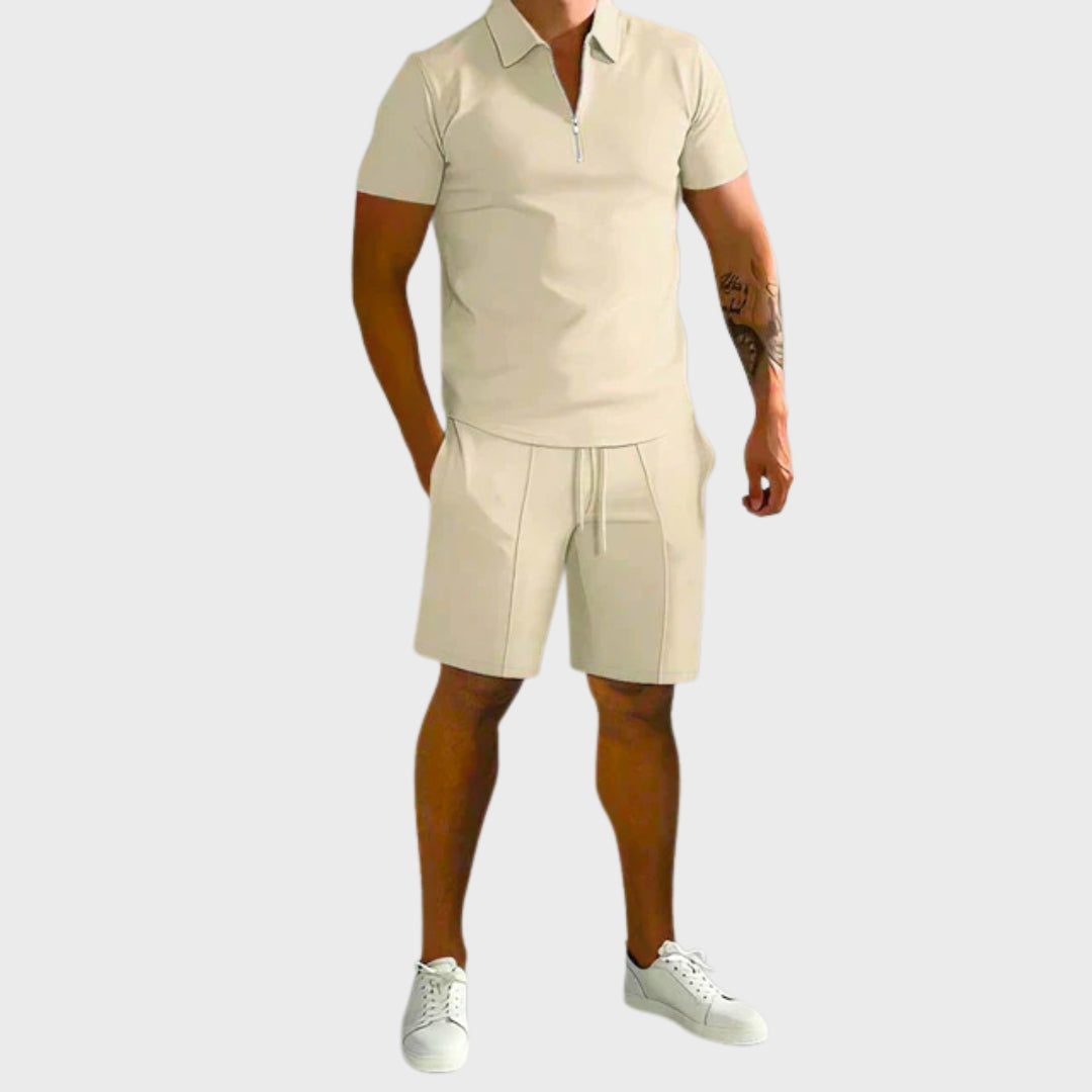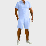 Setul Carlos combină un polo și pantaloni scurți într-un stil sofisticat, dar relaxat, ideal pentru zilele mai calde. Versatil și modern, se adaptează ușor la diferite ocazii, de la întâlniri casuale la momente mai elegante de vară.