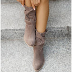 Alexis – Botine de Damă din Suede cu Toc Jos Elegant